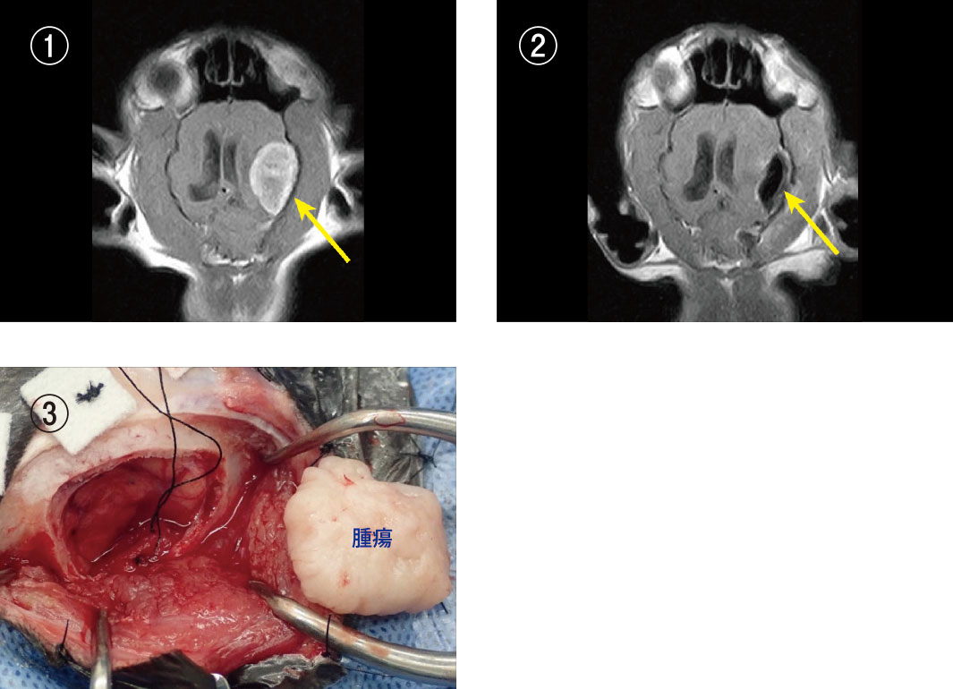 症例 ①犬、非定型髄膜腫(グレードⅡ)、後頭蓋窩に発生