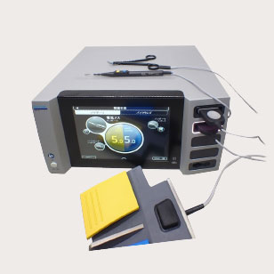 凝固・切開能力の高い高周波手術装置です。メス型とピンセット型の器具を操作して手術部位に応じて様々なパターンの止血・切開が可能です。手術をより安全にスピーディーに、出血を抑えて行うことができます。